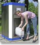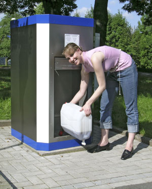 Die Bedienung ist einfach und international verständlich. Nachdem eine Münze eingeworfen wurde, signalisiert die grüne Lampe, dass das Gerät betriebsbereit ist. Sie können nun durch betätigen der entsprechenden Taste zwischen Frischwasser-Versorgung und Abwasser-Entsorgung wählen.