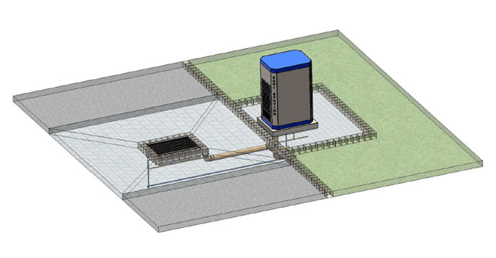 Der Bodeneinlass wird an die Sani-Station angeschlossen und von der Station gesteuert.