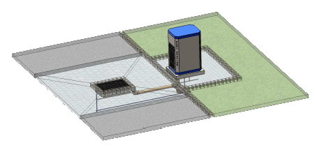 Der Bodeneinlass ist von der unteren Seite mit Beton ausgegossen und kann über 4 Ösen mit einem Kettengehänge eingebaut werden auf einer frostsicheren Betonplatte